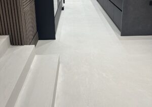 The result is a stunning, seamless microcement finish that offers a sleek, minimal aesthetic with a smooth feel underfoot. The client is delighted with the final installation, which perfectly complements the modern design of the home.