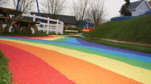 The finished pathway creates a stunning rainbow effect that brightens up the entire area. Read more a about our playground flooring here.