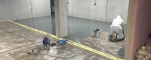 Being a basement there were obvious issues with water ingress and working within a damp environment. Following our visit and in close liaison with Remmers, Flexflooring proposed installing Remmers Epoxyflex PH with a moisture tolerant epoxy primer.