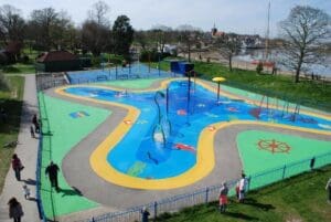 Steve Newland of SSP Water & Play commented, “The surface looks great! We have worked with Flexflooring on a number of projects and we know they offer the right product for the job. It is not only safe, but colourful too. The finished installation totally rejuvenated an old paddling pool and local parents and children are thrilled with the new wet play area.”