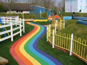 Just like with pools, this material is porous, so rainwater drains right through. This eliminates mud and keeps the play area usable even after a downpour. From a design standpoint, the flexibility is a huge bonus. We can use different colours of EPDM to create patterns, games, or educational designs directly on the ground.
